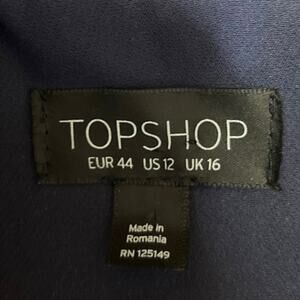 Topshop Navy Blue Zip Up Collar Long Sleeve Flap Windbreaker Rain Pockets Stitch Coat Jacket 12