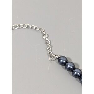Elegant Gray Faux Pearl Rhinestone Graduated Bead Necklace Retro 20 in