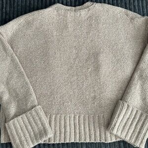 Chunky open-front cardigan with a relaxed fit. Ribbed cuffs and hem for added texture. Soft knit ideal for layering over tees or blouses. Neutral beige pairs easily with many outfits.