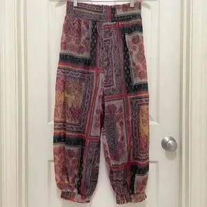 Keywords: Boho, Festival, Hippie, Eclectic, Patchwork Print, Loungewear, Athleisure, Bohemian, Paisley, Relaxed Fit, FP Movement, Free People, Yoga, Harem Style, Balloon Pants, Bali Vibe