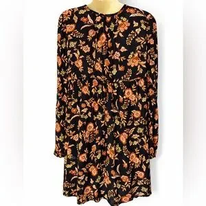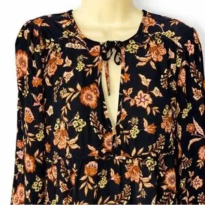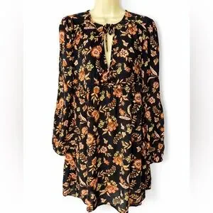 Billabong Hearts Desire Floral Boho Mini Dress Large Black Orange Long Sleeve