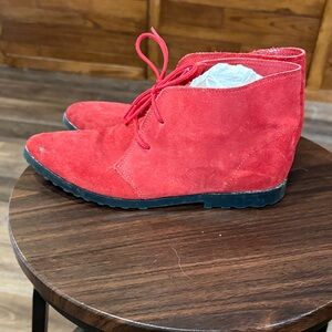 Source Unknown Red Suede Lace-Up Desert Booties