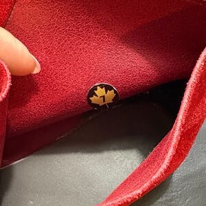 Bold red suede ankle booties with front lace-up closure. Rounded toe and low stacked sole. Simple silhouette for everyday wear. Width. 3 1/2”