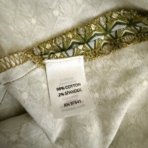 The J.Jill Retro Inspired Women's Akle Cropped Pants in size 4 are a stylish and comfortable option for casual wear. These green geometric pants feature a stretchy spandex and cotton blend, making them perfect for the summer and spring seasons. The mid-rise and tapered leg style adds a modern touch to the retro-inspired design, while the zip and button closure ensures a secure fit. Easy to care for with machine washable instructions, these pants are a versatile addition to any wardrobe from the trusted brand J. Jill.