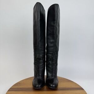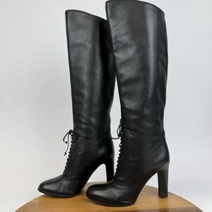 Womens Tom Ford Black Leather Lace Up Heeled Tall Riding Boots Size EU 38.5 GUC