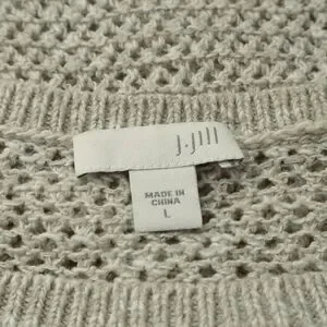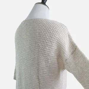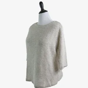 J Jill Size L Linen Blend Open Knit Sweater 3/4 Sleeve Pullover Cream