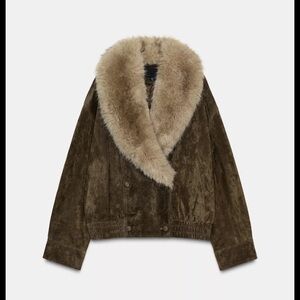 Zara 100% suede leather jacket with fur