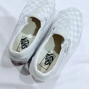 Vans Light Blue and White Checkered Slip-On Sneakers