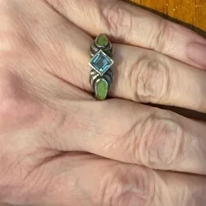 Avon blue topaz and Australian green lime sterling silver stamped ring