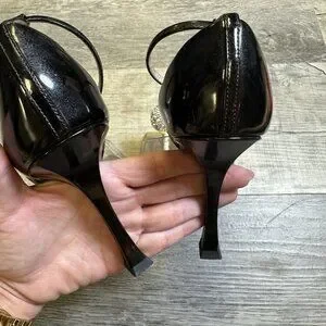 • Color / Material: Black patent leather, clear PVC, silver-tone insole