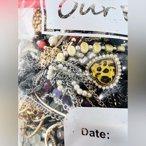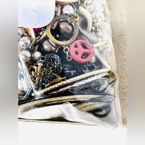 This is an awesome Diverse collection of metal jewelry. Includes chains, pendants, Bracelet and some earrings a lot of singles. 80 percent of the items are wearable. They are in overall good condition but may need some cleaning, some may be broken or missing a match and discoloration. They have not been tested and have no markings. If you have any questions or concerns please let me know. Thank you and happy shopping.