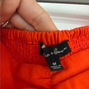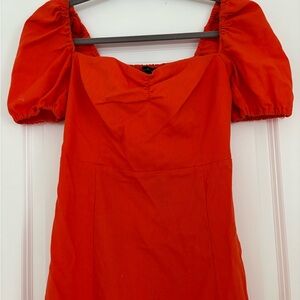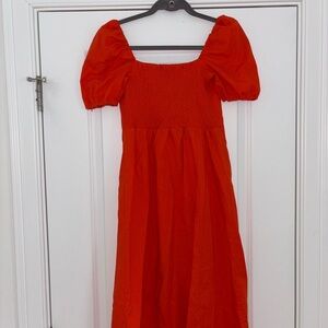 Red Orange Puff Sleeve Midi Dress