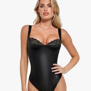 NWT Popilush Faux Leather Lace Balconette Sculpting Bodysuit Black Shapewear