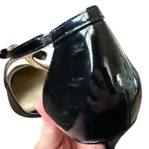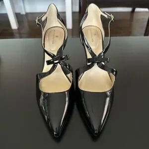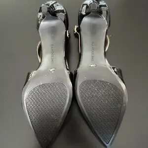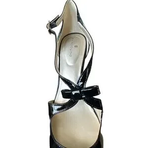 Bandolino Black Patent T-Strap Bow Pumps Womens Size 11M Pointed Stiletto Heels