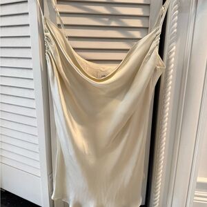 Chic cream camisole by Wilfred. Features a draped neckline and thin straps that are adjustable. Ideal for layering or wearing alone.