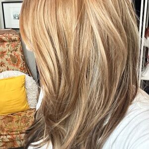 Enhance your look with this stylish blonde and brown wig. Perfect for any occasion, this wig offers a natural and fashionable appearance.
