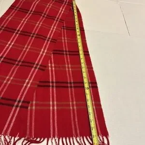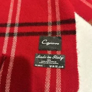 Cejon plaid red white black & tan striped scarf made in Italy with fringe
