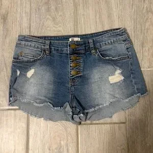 LIKE NEW - WORN THREE TIMES IN GREAT CONDITION! Women's Billabong, distressed, button fly jean shorts. Great tears and distressing throughout, raw edged hem. Have a little stretch to them. SIZE - 26
