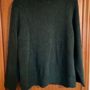 Classic cable knit sweater in dark green. Crewneck styling with textured knit. Comfortable and easy to layer.