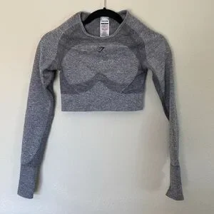 Gymshark flex cropped long sleeve top women’s small grey EUC