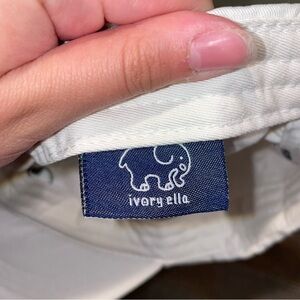 White Ivory Ella Hat. Lightly worn, in great condition! The elephant is a teal color. There is slight discoloration on the inside (pictured,) but otherwise, it’s in excellent condition!