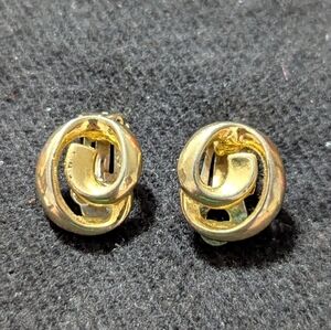 Vintage Gold Tone Swirl Knot Clip On Statement Earrings. .75" long.