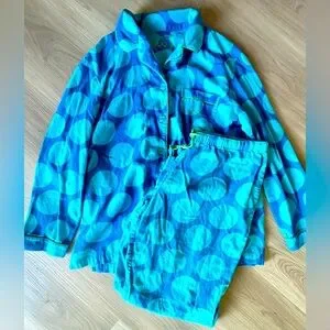 Victoria’s Secret Flannel Cotton Pajamas MED Vintage Blue/Lime Polka Dot-