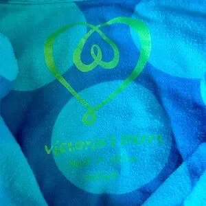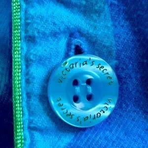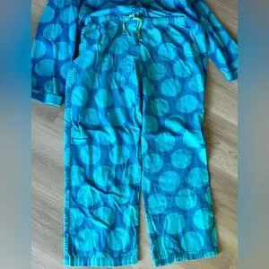 RARE -VINTAGE-made better, cozy & comfy, soft 100% cotton turquoise pj set with lime green piping in Medium, button up top with heart on front pocket, drawstring pants, from smoke and pet free home