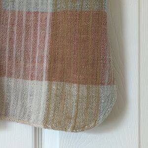 VTG and straight out of the 70s - This adorable top features a v-neck, short dolman sleeves with gathered details at the shoulders, a buttoned pocket on the upper left chest, and a curved hem. It is composed of a woven gauze material with a plaid design that is pink, beige, tan, and blue! It's lightweight, breathable, and comfortable with a relaxed, boxy fit making it perfect for Spring and Summer! Pair with high rise mom jeans or shorts and pair with chunky sandals or loafers for a retro look! Classic, cute, and versatile! High quality!
