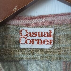 Casual Corner 70's Vintage Plaid Woven Gauze Short Dolman Sleeve V-neck Top