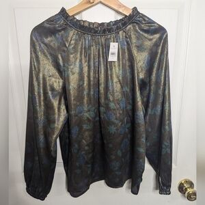 New Ann Taylor Womens Top Metallic Long Sleeve Shirt Size XS Green Blue NWT