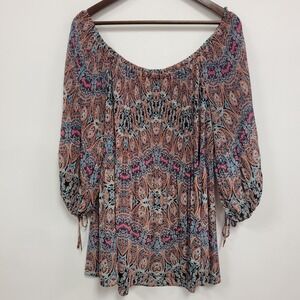 Rose & Olive Womens Adjustable Scoop Neck Artsy Crinkle Top Size 1X Multicolor