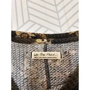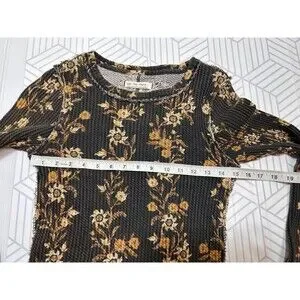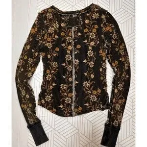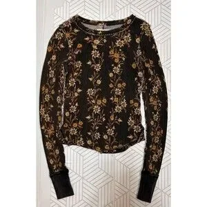 Free People Pretty Little Thermal Waffle Knit Shirt Top Small Floral Long Sleeve
