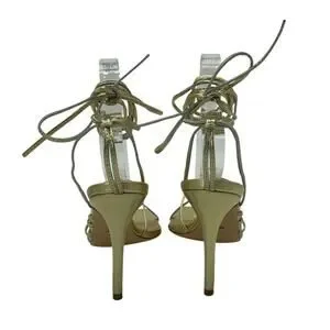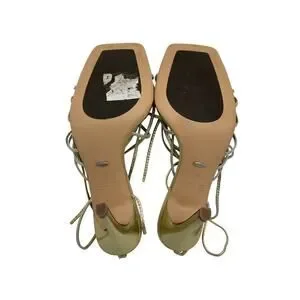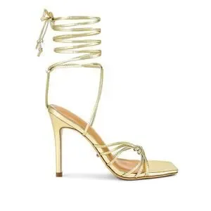 Metallic gold strappy lace-up sandals with a square toe and stiletto heel from Tony Bianco. This garment features features slender straps and a sleek high-heel silhouette.
