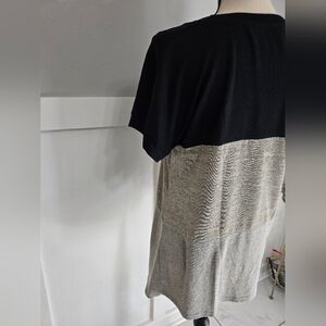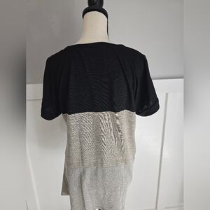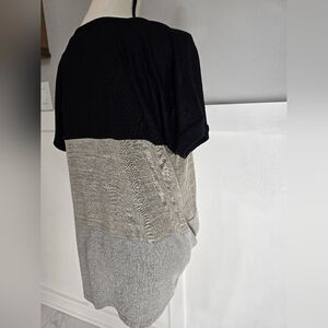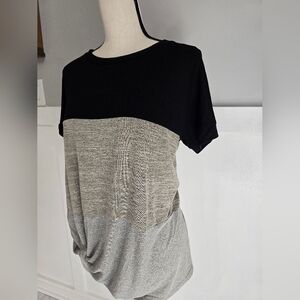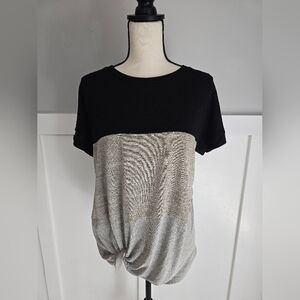 Two Two Win Colorblock Knot-Front Short Sleeve Top - Black & Gray Sz M