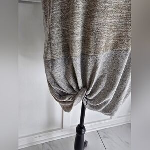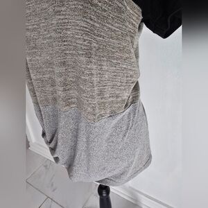 Effortless colorblock top with a knotted front for a modern silhouette. Soft black upper with two-tone gray panels create versatile styling options. Lightweight, breathable fabric ideal for everyday wear. Easy to pair with jeans or leggings for a polished casual look.