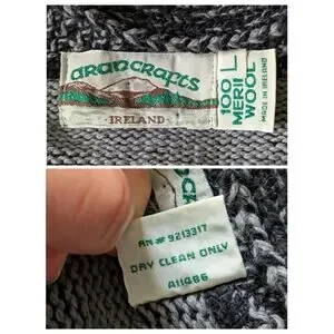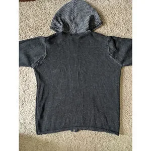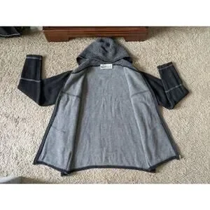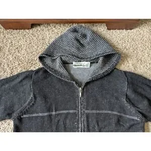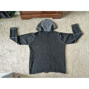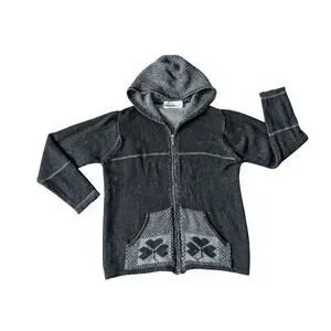 Aran Crafts Hoddie Sweater Full Zip Jacket Womens L Black-Gray Merino Wool Shamrock Fairy Thermal Heavyweight