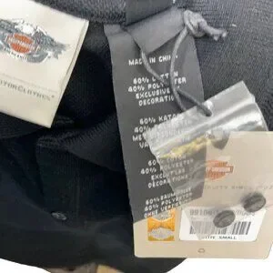 Crafted for comfort and style, this Harley-Davidson black polo shirt is a versatile addition to any wardrobe. Designed with a classic collared neckline and a convenient pullover closure, it's a timeless piece that embodies the spirit of the open road. The shirt comes in a size small, fitting snugly to showcase a sleek silhouette. Accented with tasteful buttons that add a touch of class, this basic-style polo is perfect for both casual outings and dressier occasions. Its quality construction and the renowned Harley-Davidson brand ensure both durability and fashion-forward appeal, making it a must-have for those who appreciate a blend of simplicity and sophistication.