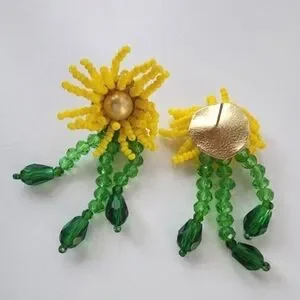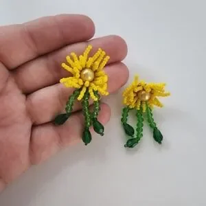 Amazing and unique yellow seed beaded floral earrings. Such a cute statement piece.