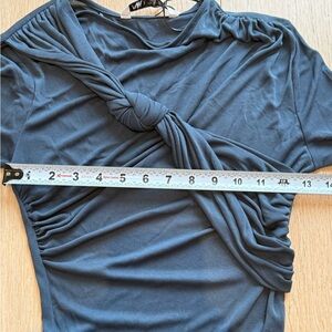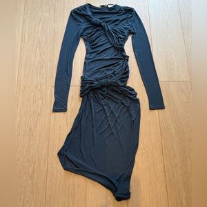 Absolutely stunning Zara draped dress that hugs the body in all the right places. The architectural knot detailing across the chest and hip creates a super flattering, sculpted silhouette while the soft stretch fabric keeps it comfortable and elegant.
