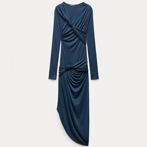 ZARA Draped Knot Midi Dress – Sculpting Bodycon – Size S (Stretch S/M)