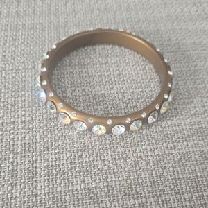 This stunning gold bracelet is adorned with sparkling crystals, perfect for adding a touch of elegance to any outfit.