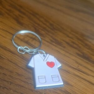 Charming key holder featuring a heart design on scrubs. Perfect for healthcare professionals.