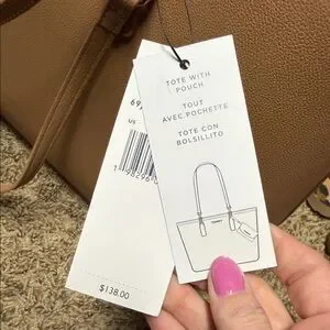 Elegant tote with signature logo. Spacious interior. Ideal for daily use.