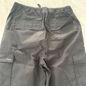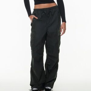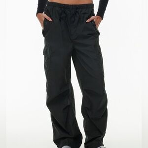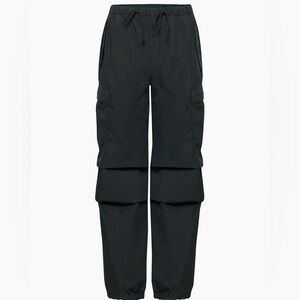 Aritzia TNA Squad Pocket Parachute Pant in the colour black. Oversized mid-rise cotton cargo parachute pants with cargo pockets and a drawcord. Only worn once and in excellent condition! Style and colour sold out online.