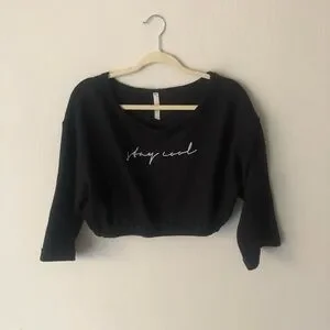 Super cute cropped sweatshirt with “stay cool” across chest. Perfect for yoga or lounging around. Size large. In great condition.