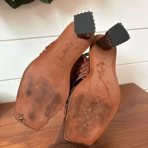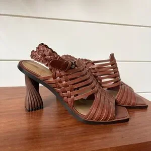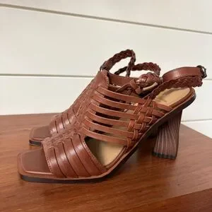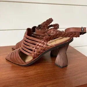 Step out in style with these elegant braided brown sandals. Perfect for any occasion, these shoes offer both comfort and sophistication. Great used condition - may show the slightest scuffs in places but please refer to pics for details.