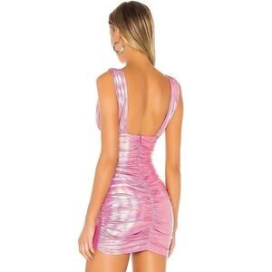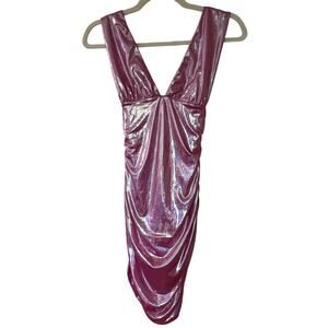 NWOT Superdown Revolve Kerrie Deep V Dress Pink Holographic Ruched Barbiecore