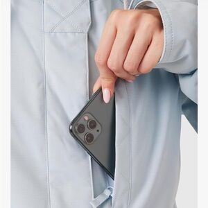 TECH-ENABLED FEATURES: Mesh-lined underarm vents, 3-way adjustable hood, Lycra wrist gaiters, and sleeve pass pocket provide customizable coverage and airflow