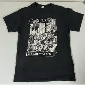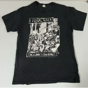 Black ‘A Global Threat: The Kids Will Revolt’ Punk Rock Band Tee T-Shirt Size S
